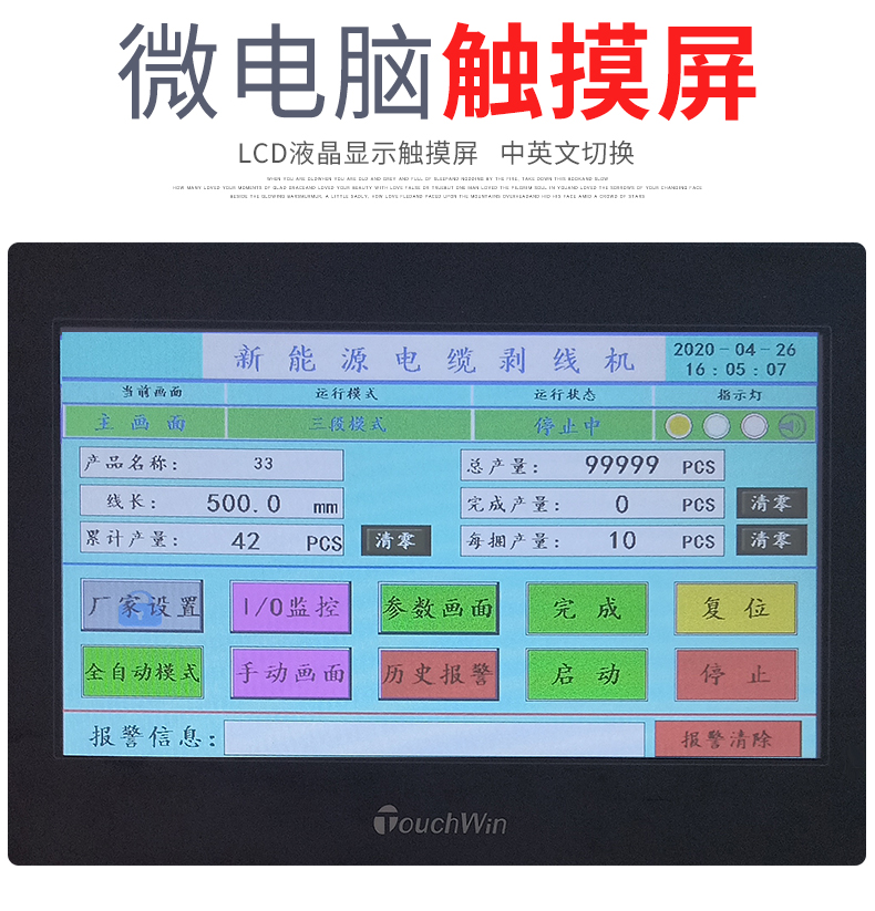 1、本产品自主独立研发,拥用知识产权专利程序,配合7寸彩色触摸屏同高速运动控制系统,操作简便,稳定性高;