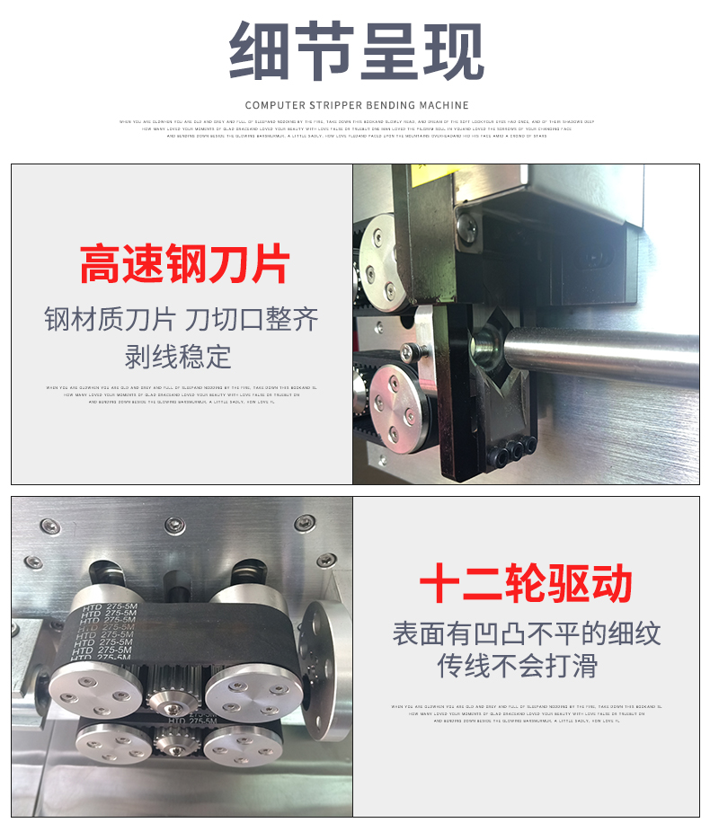 2、采用12个送线轮组,皮带送线,皮带和线材的接触面积更大,送线稳定,长度精准,线材没有压痕;